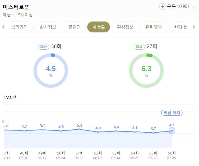 미스터로또 시청률입니다. 회차별 시청률도 확인해보세요.